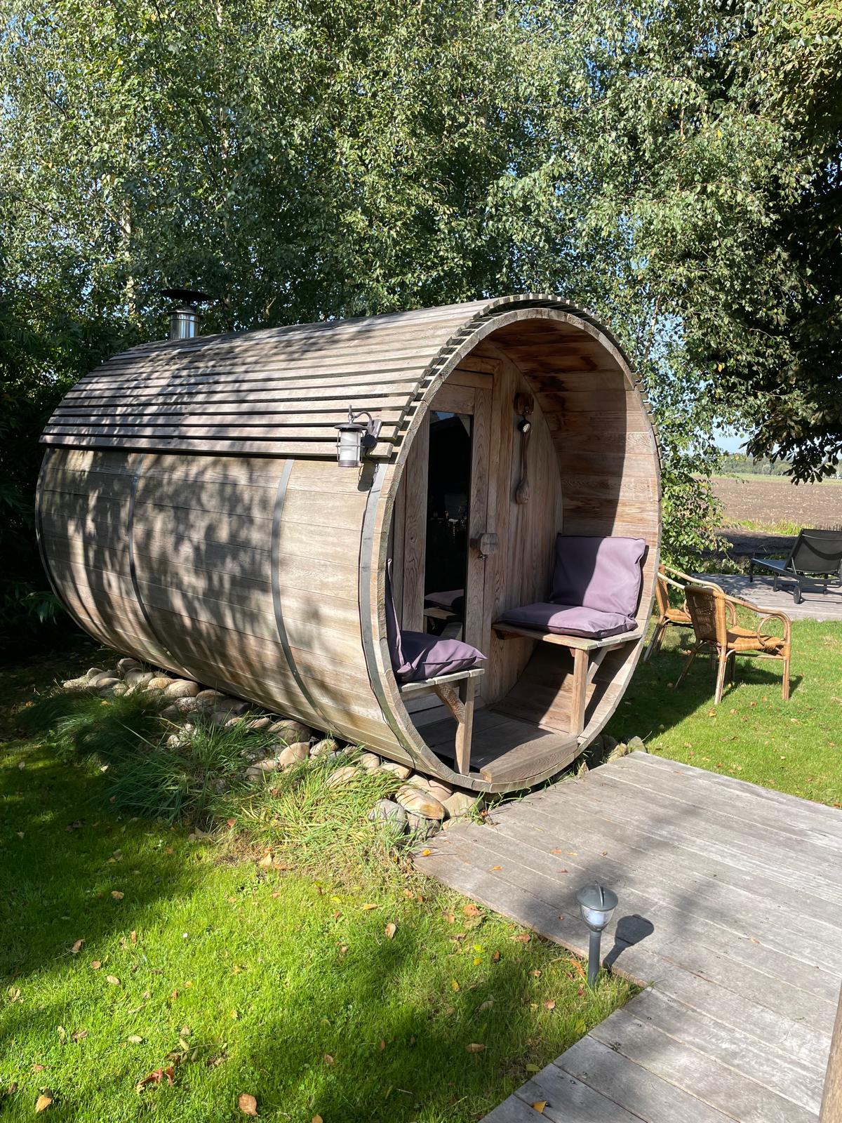 - Houtgestookte barrelsauna incl. opgietgeuren